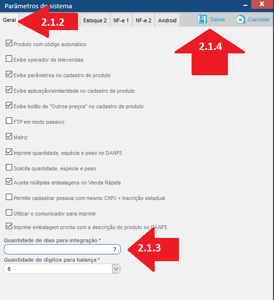2.1.1 -> Configurações -> Parâmetros do sistema
